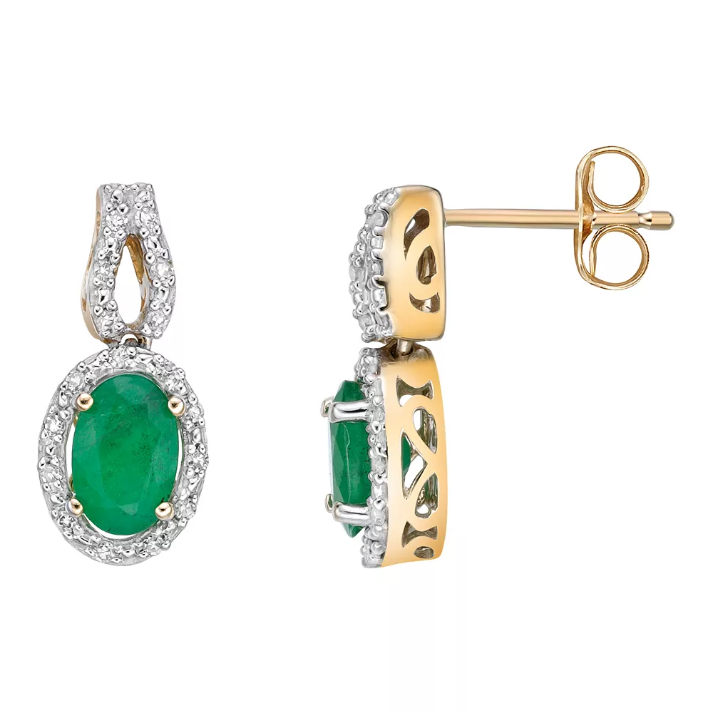 Accessorize with these sparkling diamond and emerald drop earrings that are sure to impress.