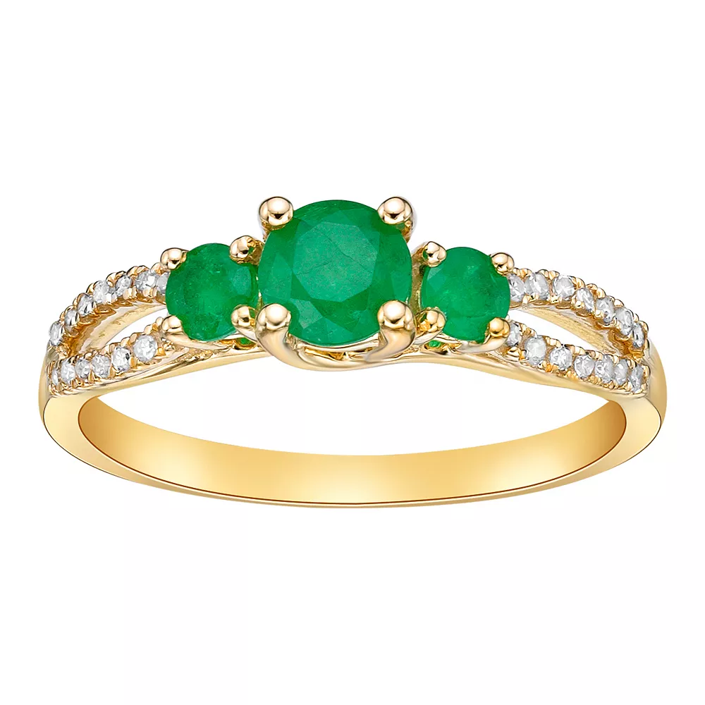 This stunning emerald ring is made with 10k gold and a sparkling diamond details for an accessory you’re sure to love.