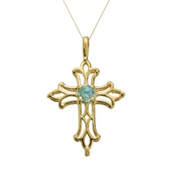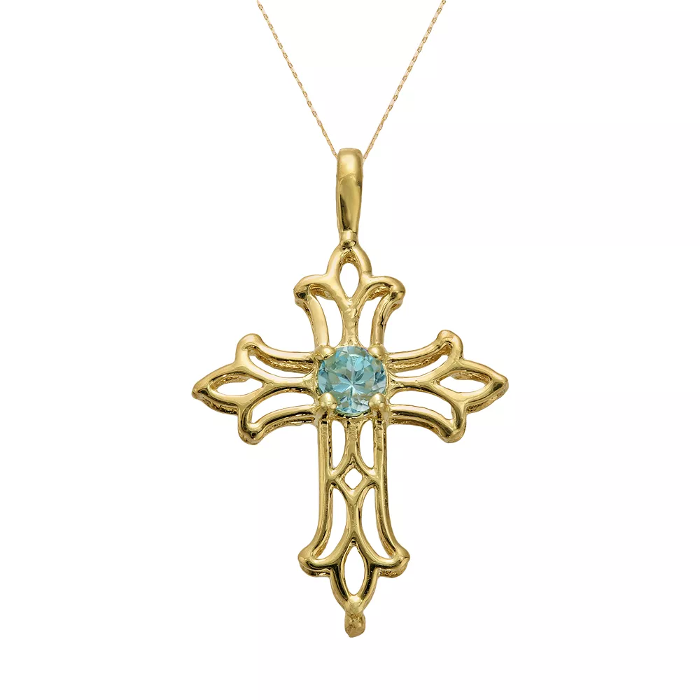 A genuine blue topaz stone and filigree details give this cross pendant eternal beauty.