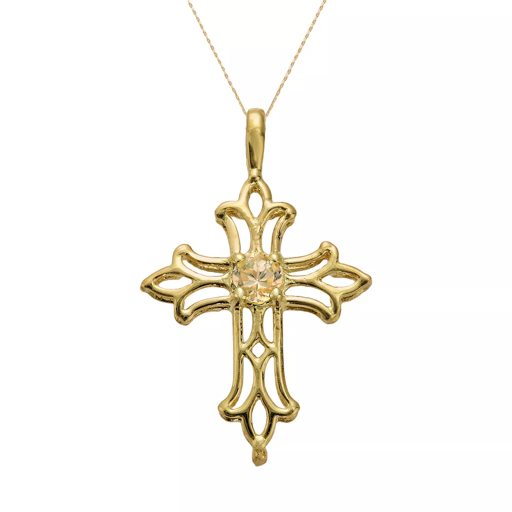 A genuine citrine stone and filigree details give this cross pendant eternal beauty.
