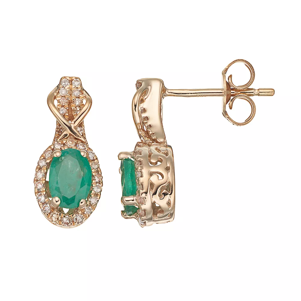 Featuring oval-cut genuine emerald center stones surrounded by sparkling diamond accents, these 10k gold halo earrings are exquisitely styled.