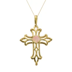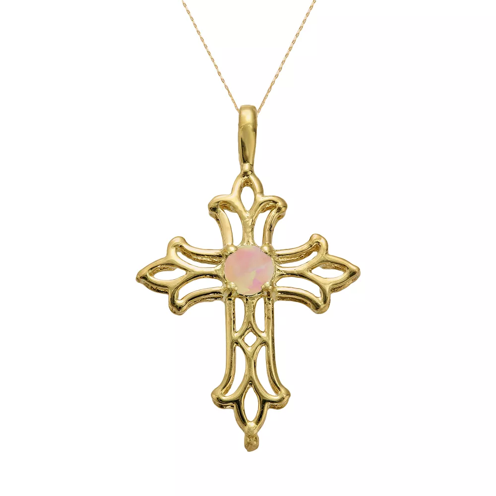 A lab-created opal stone and filigree details give this cross pendant eternal beauty.