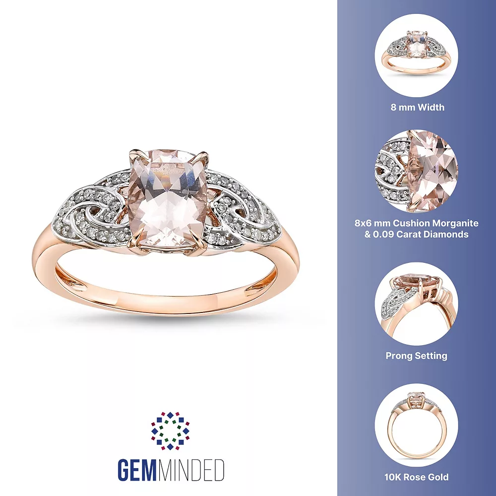 This gorgeous 10k rose gold diamond and morganite ring is the perfect way to stand out in a crowd.