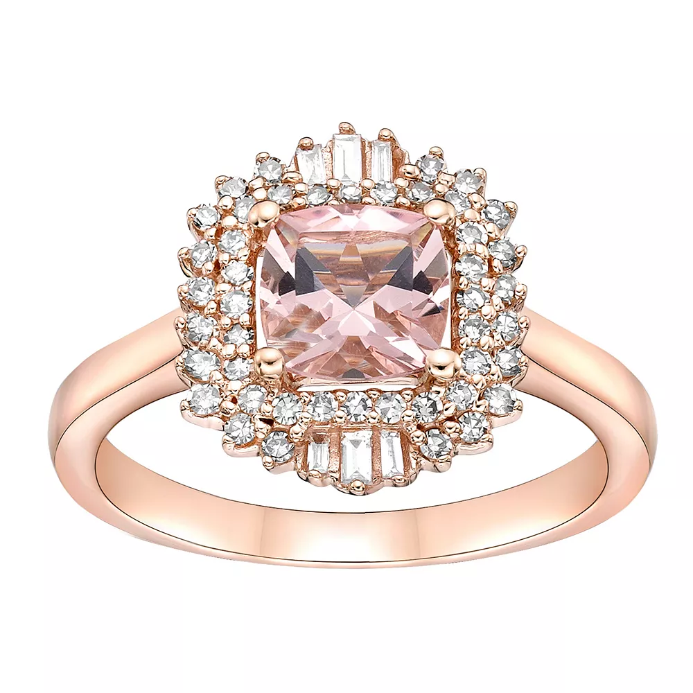 This gorgeous 10k rose gold diamond and morganite ring is a must-add to your fine jewelry collection.