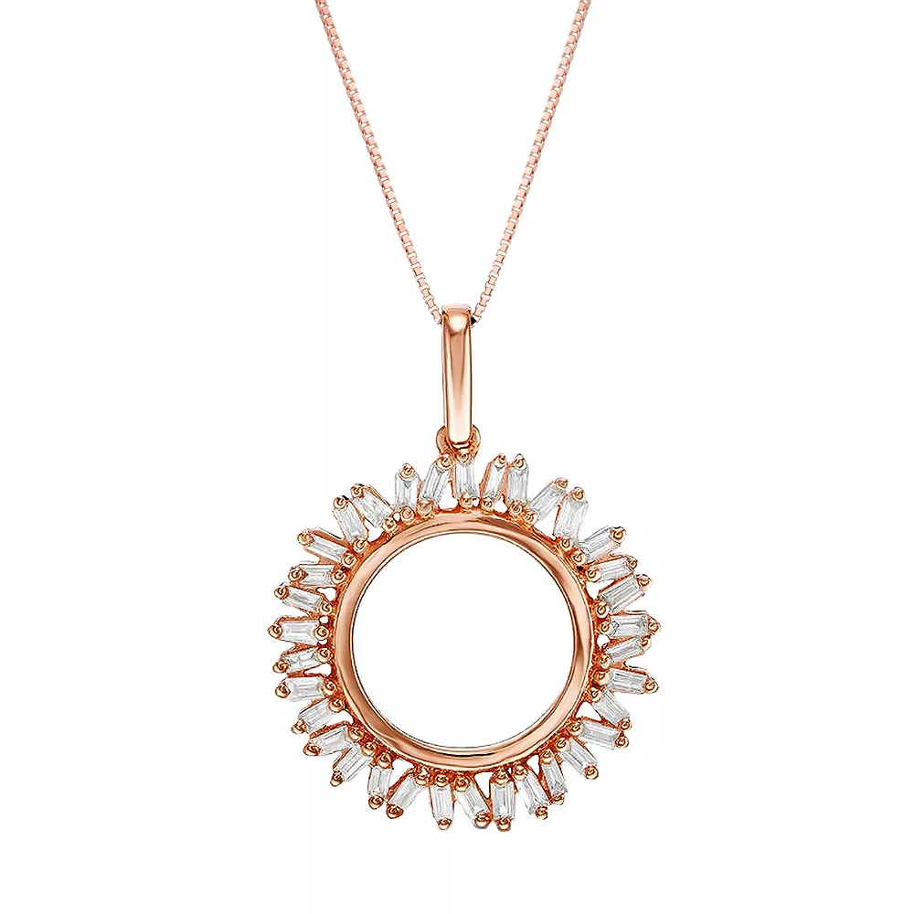 This gorgeous 10k rose gold diamond sunburst pendant necklace is a must-add to your fine jewelry collection.
