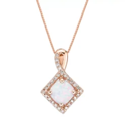 This gorgeous 10k rose gold diamond and lab-created opal pendant necklace is the perfect way to finish any outfit.