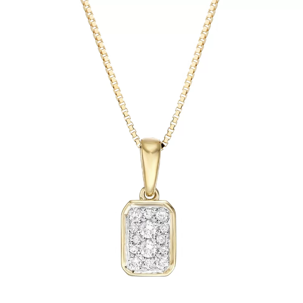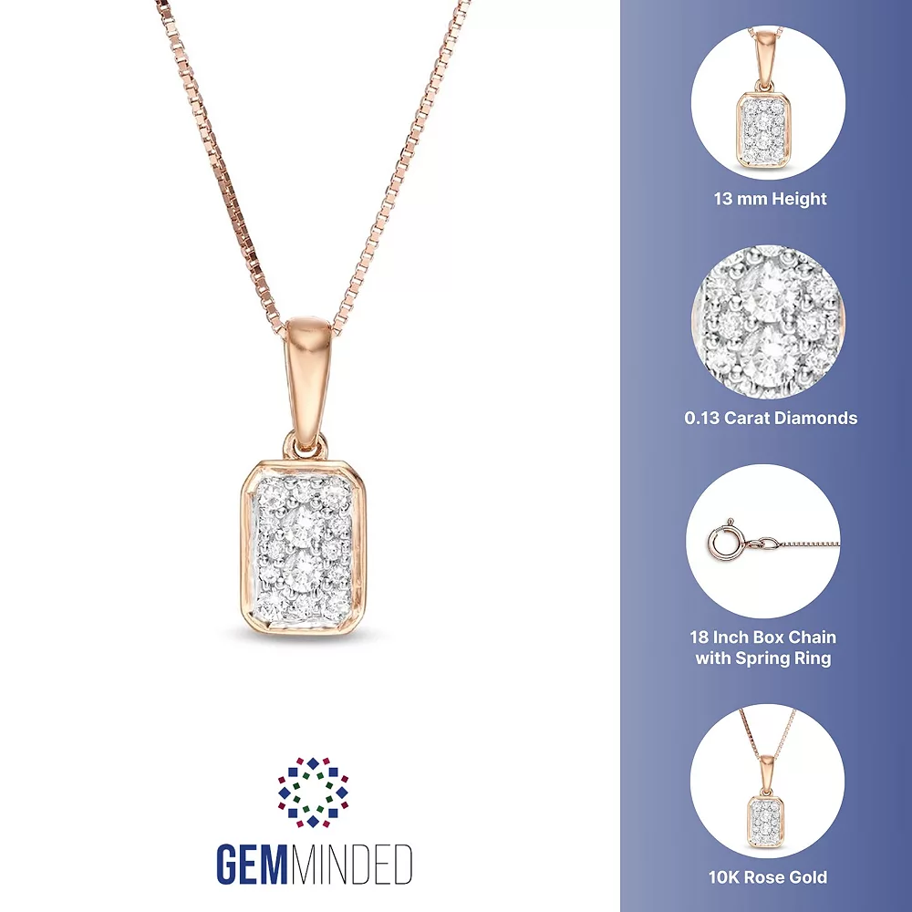 This gorgeous 10k rose gold diamond rectangle pendant necklace is a must add to your fine jewelry collection.