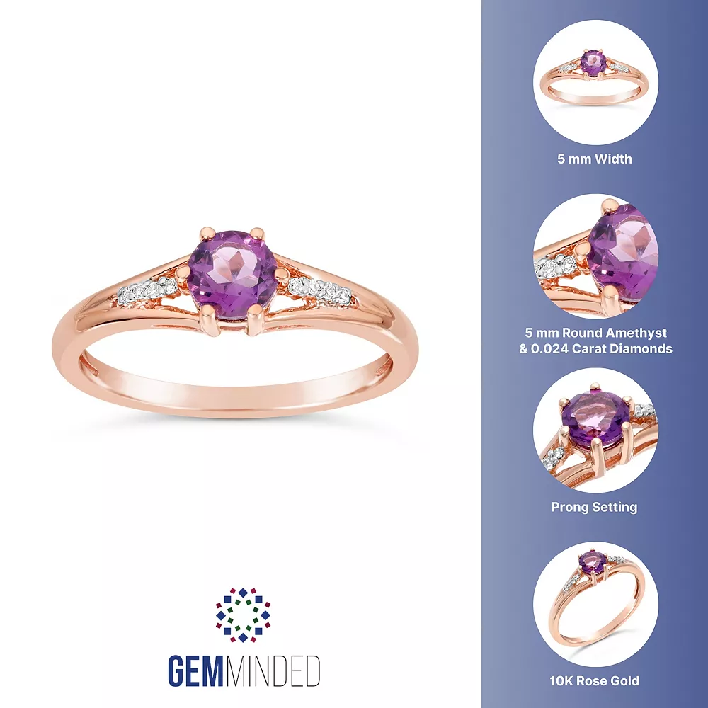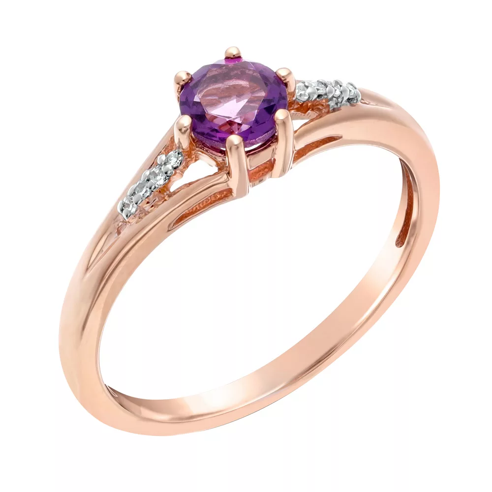 This gorgeous 10k rose gold ring showcases a dazzling amethyst and diamond accents for an accessory you will love to show off.