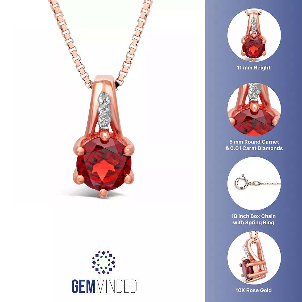 This stunning garnet necklace is made with 10k rose gold and sparkling diamond accents for an accessory you’re sure to love.