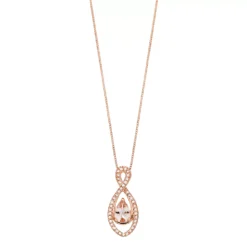 Designed with an infinity pendant featuring a morganite center stone accented with radiant diamonds, this 10k rose gold necklace provides unending beauty.