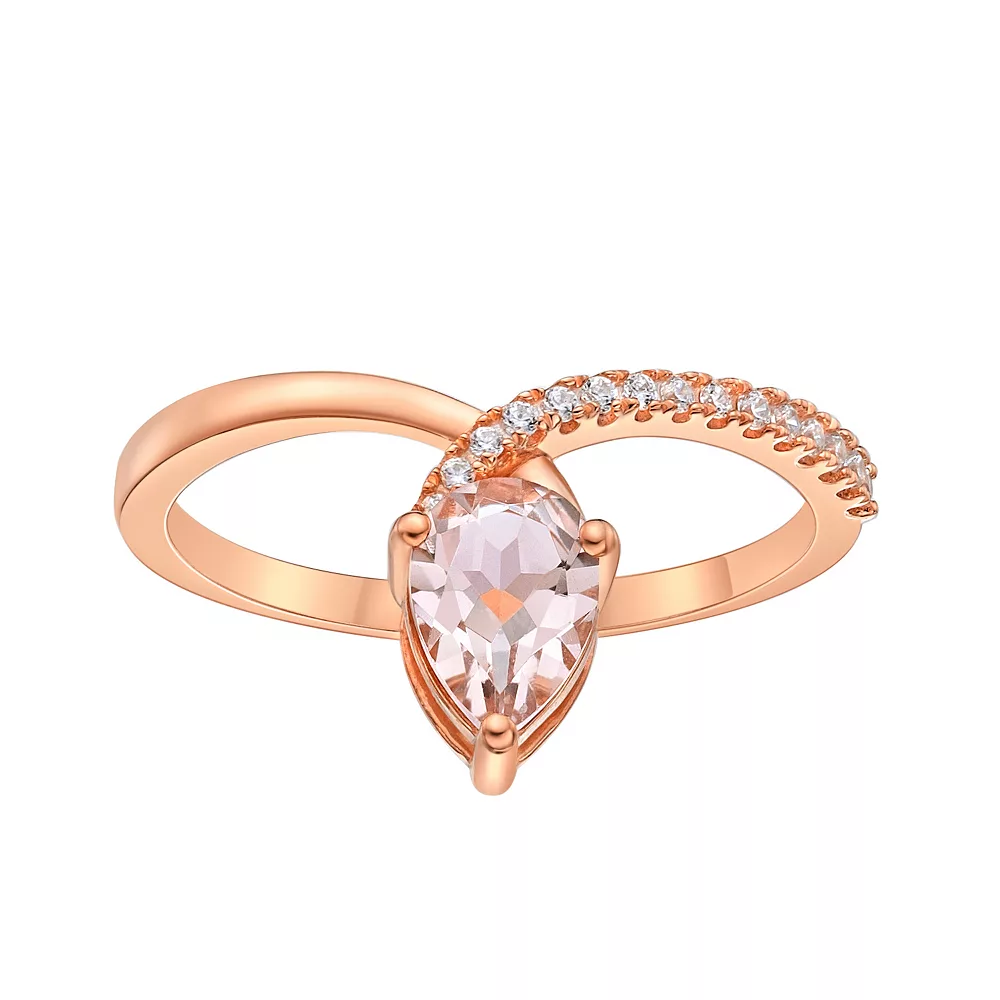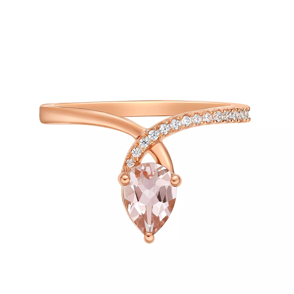 Featuring a lustrous 10k rose gold band that loops around a beautiful, pear-cut morganite center stone, this stunning ring offers an elegant and contemporary look you’re sure to love.