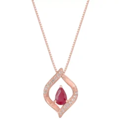 This 10k rose gold pendant necklace showcases a ruby and diamond accents for a beautiful piece you’re sure to love.