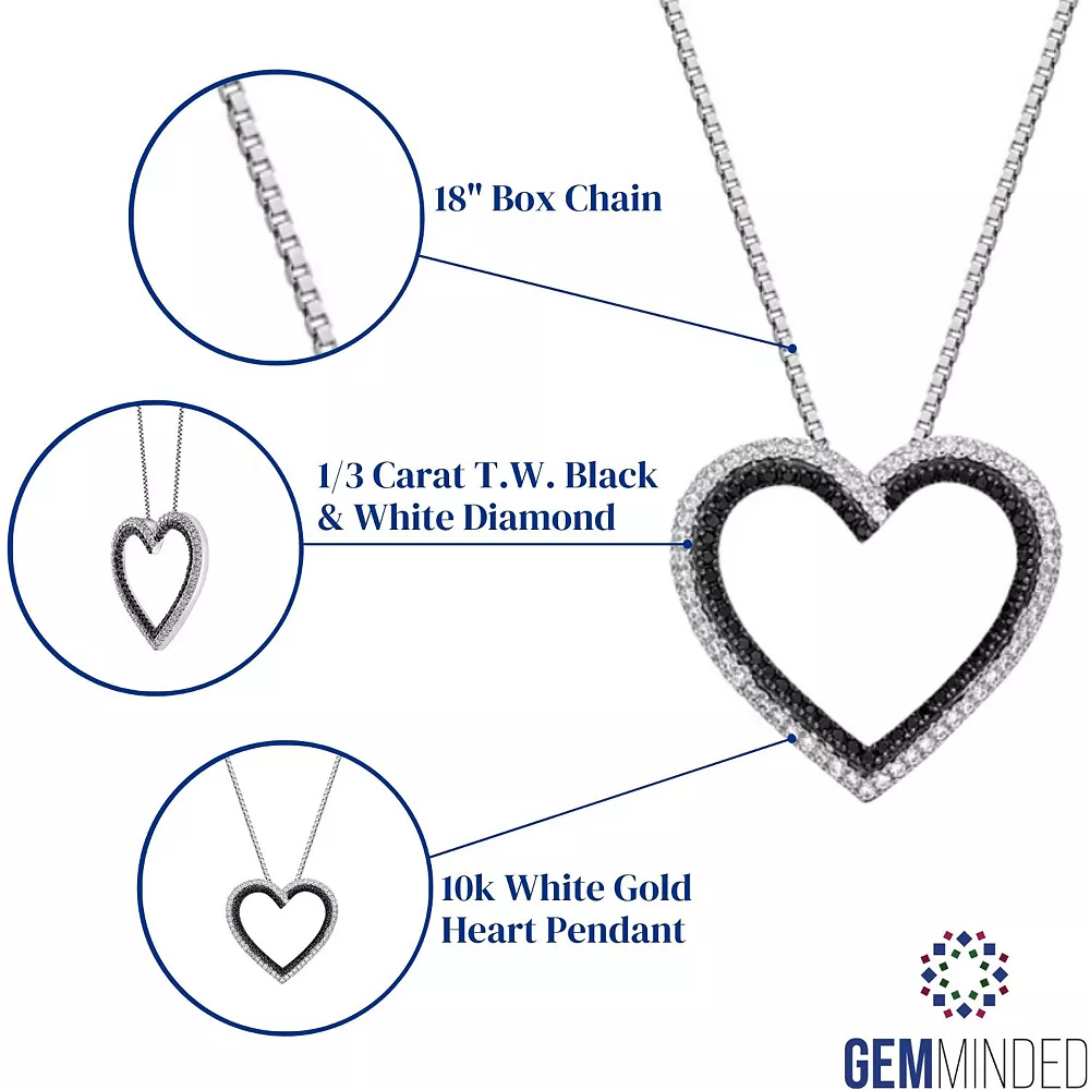 Shimmering black and white diamonds and a double-heart design make this 10k white gold pendant a captivating choice.