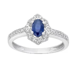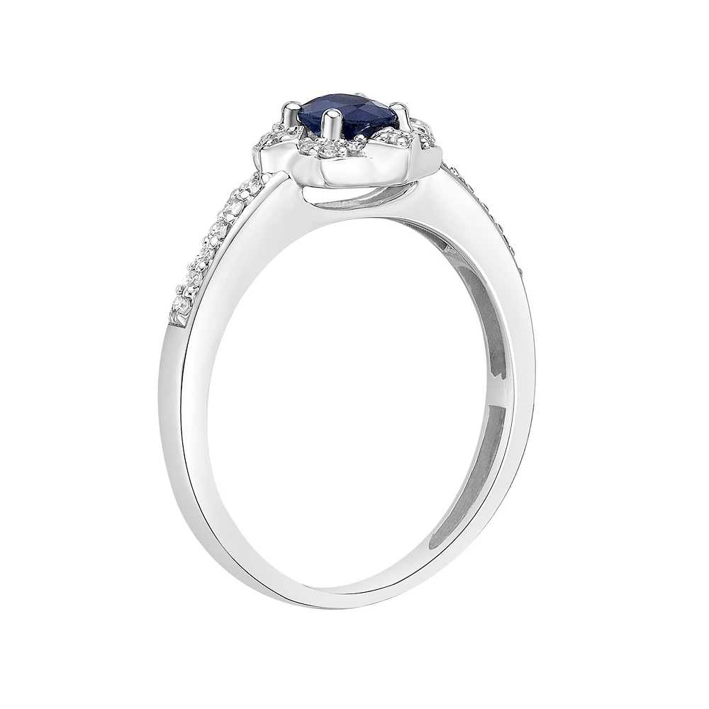 Featuring a stunning sapphire center stone adorned with diamonds, this 10k white gold ring is a must-add to your fine jewelry collection.
