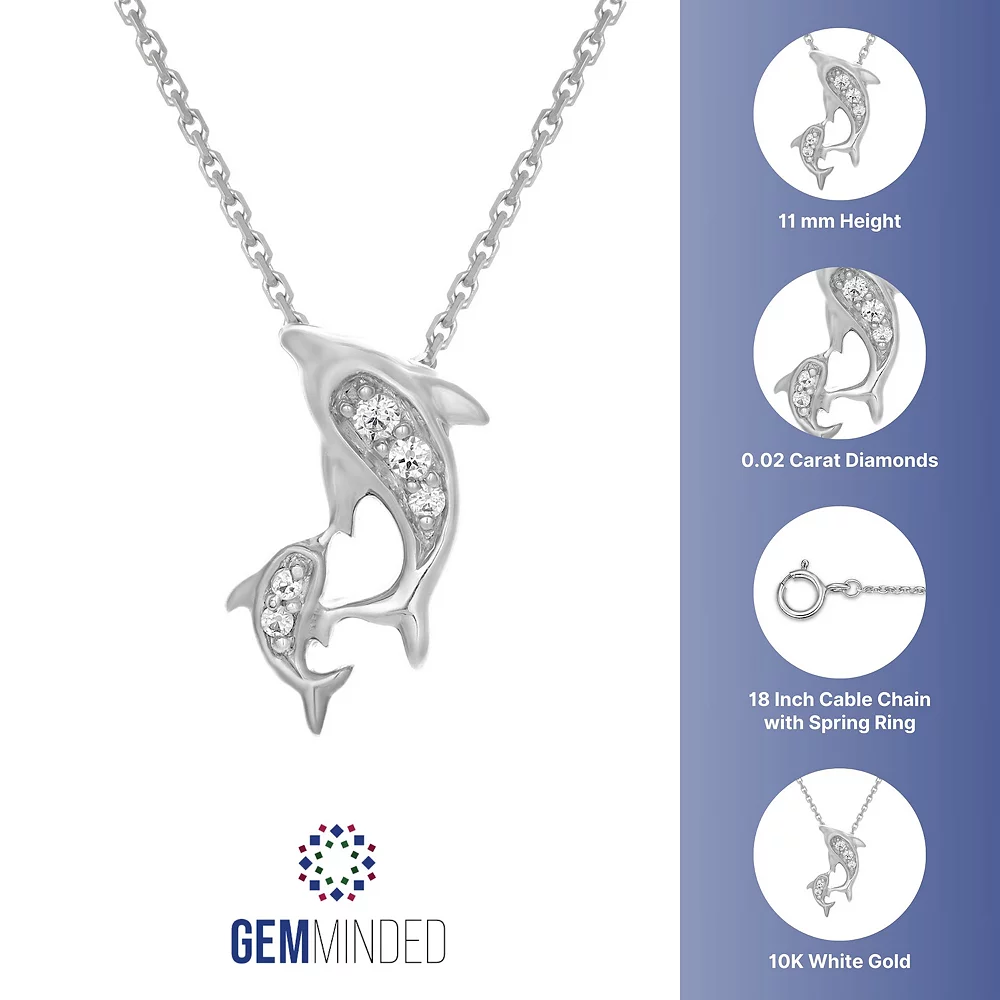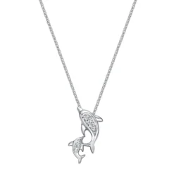 This gorgeous 10k white gold diamond accent dolphin pendant necklace is a must-have for any dolphin lover.