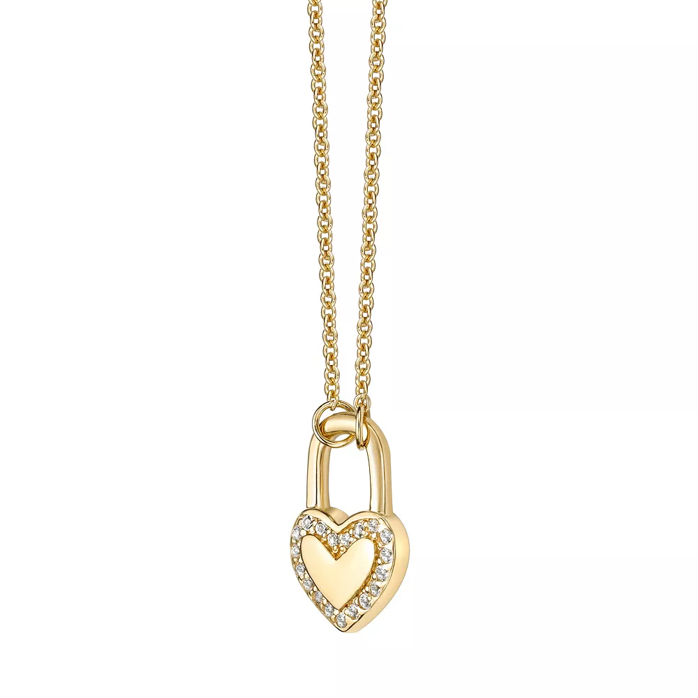 Unlock a dazzling look when you wear this sweet white topaz heart lock necklace.