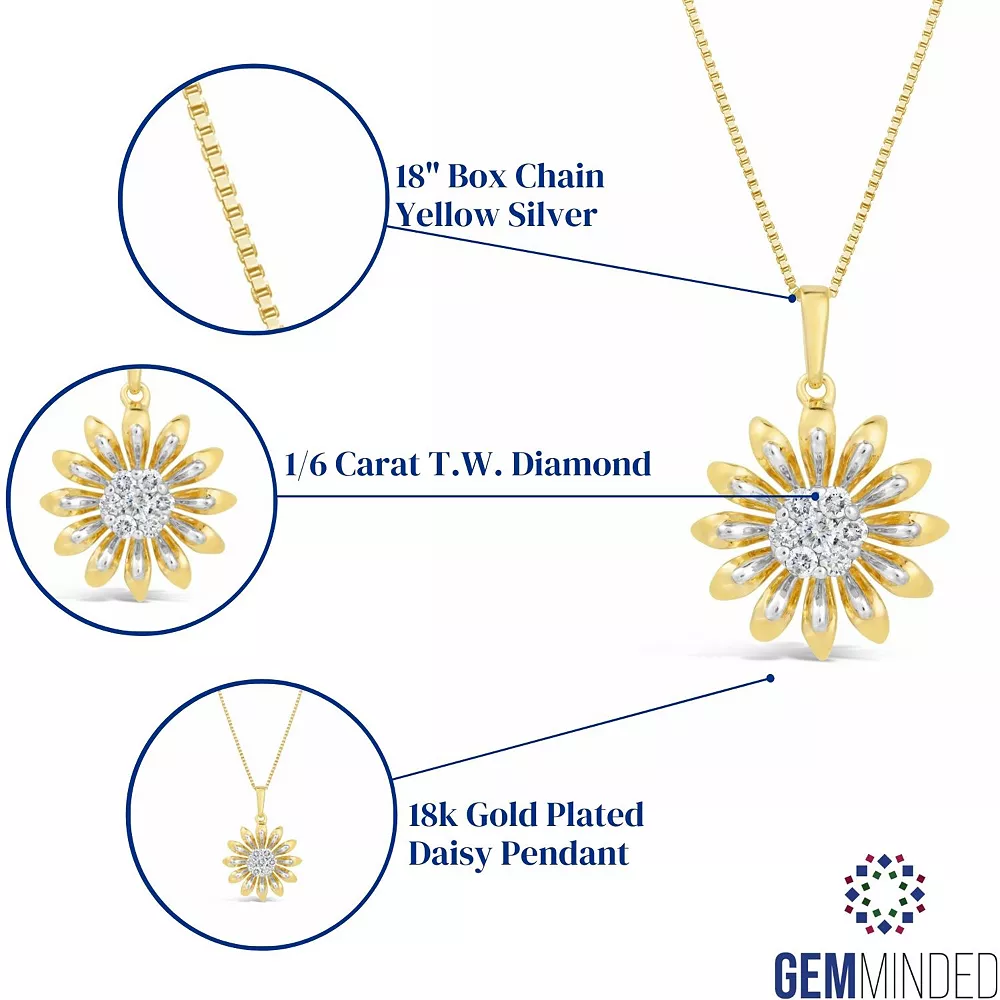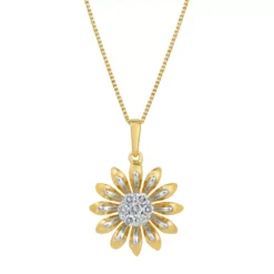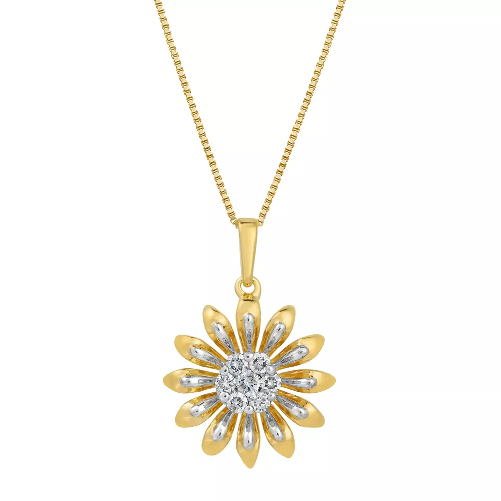 Add something new and beautiful to your daily wardrobe with this gorgeous 18k gold over sterling silver diamond daisy pendant necklace.