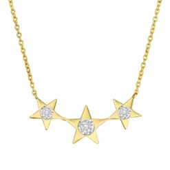 Let the world know how bright you shine with this gorgeous 18k gold over silver three-star pendant necklace, featuring a series of beautiful diamonds.