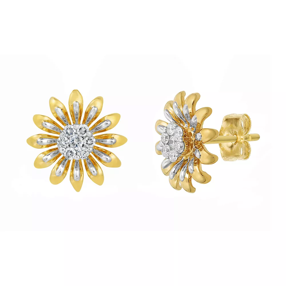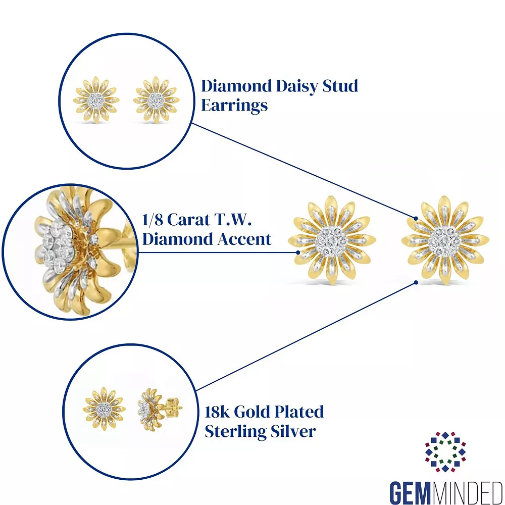 Let your sense of style bloom with this gorgeous pair of 18k gold over silver diamond daisy stud earrings.