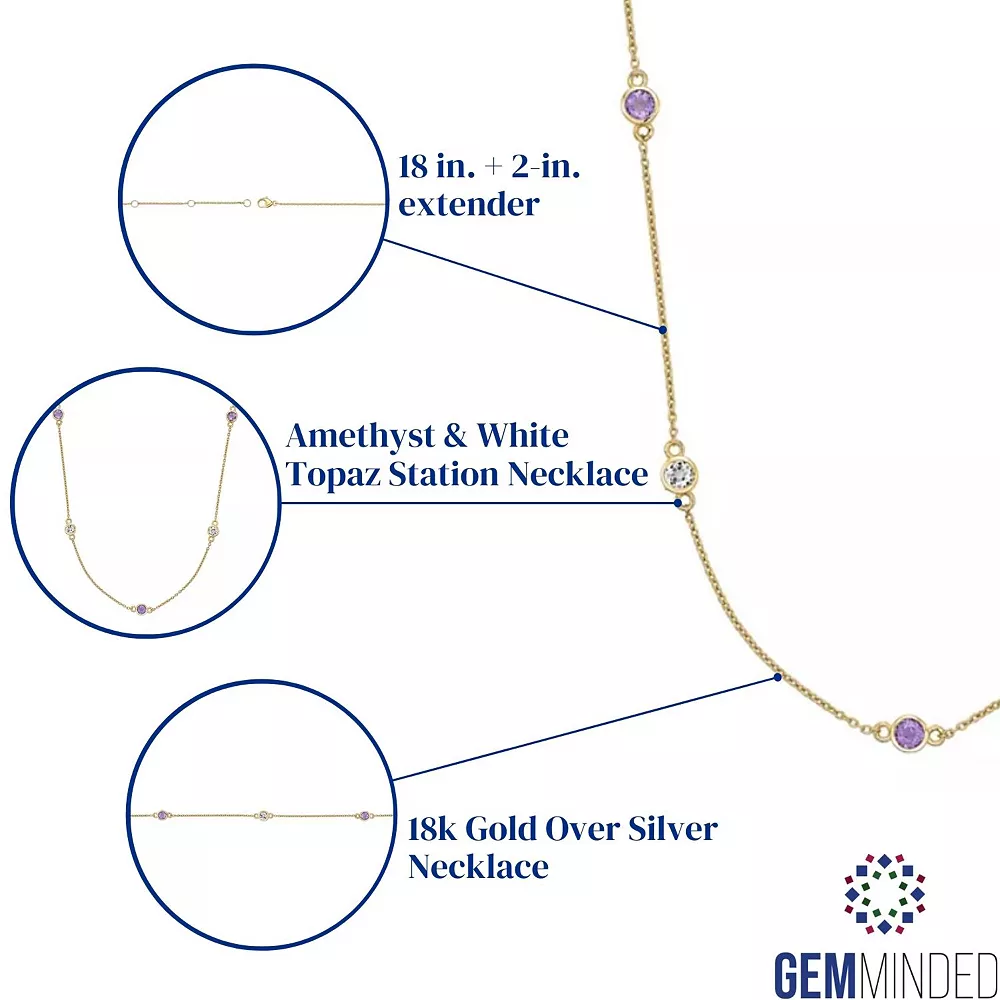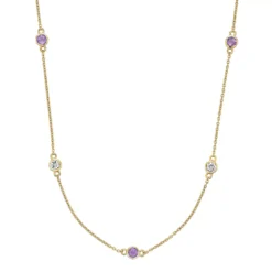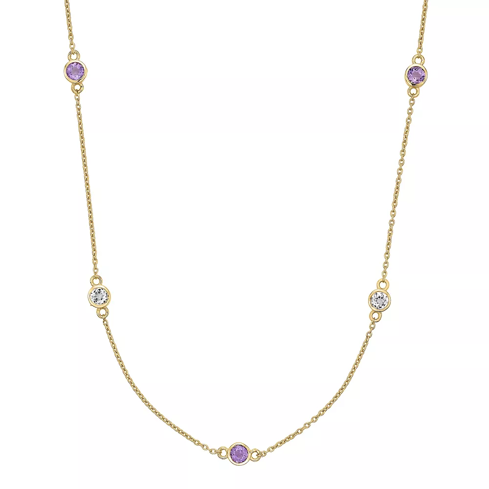 Alternating amethyst and white topaz gemstones make this stylish station necklace a captivating complement to your look.