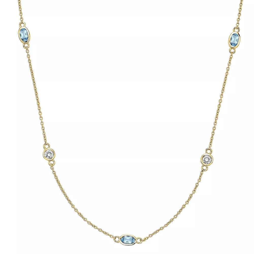 Alternating blue and white topaz gemstones make this stylish station necklace a captivating complement to your look.