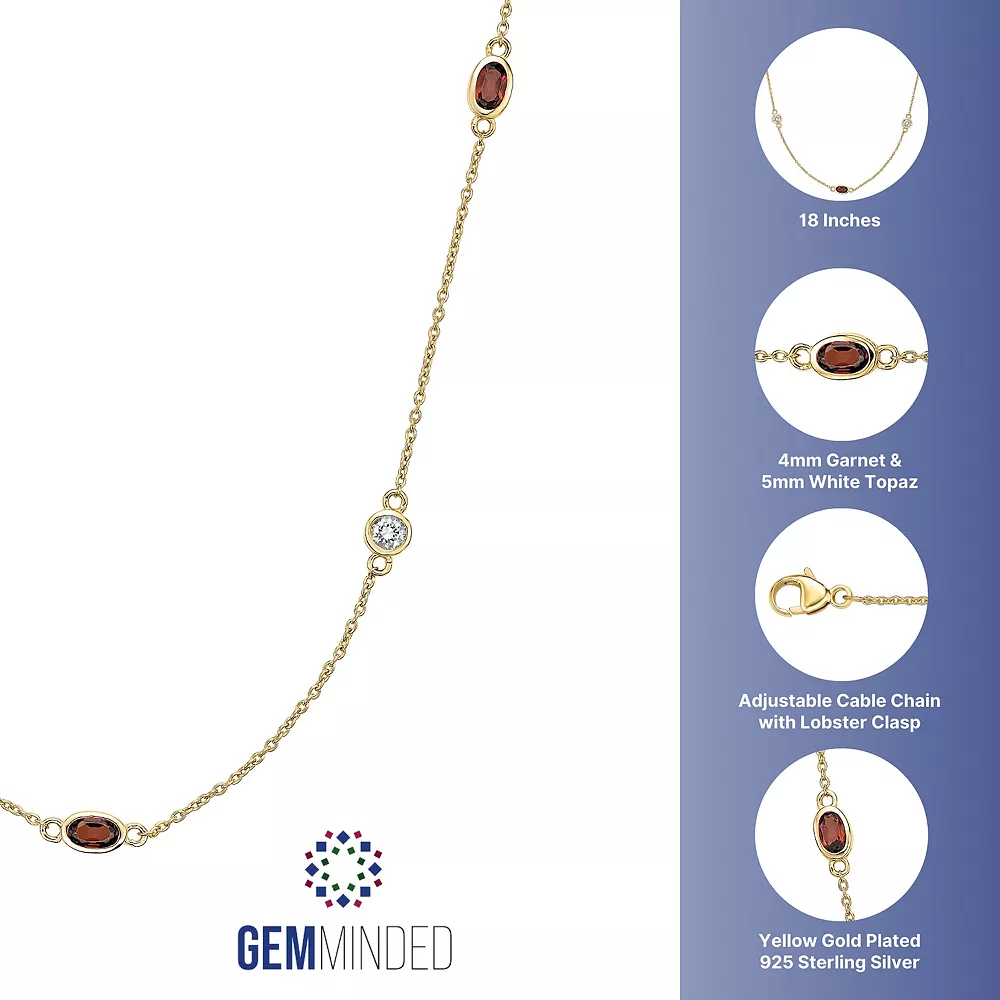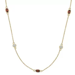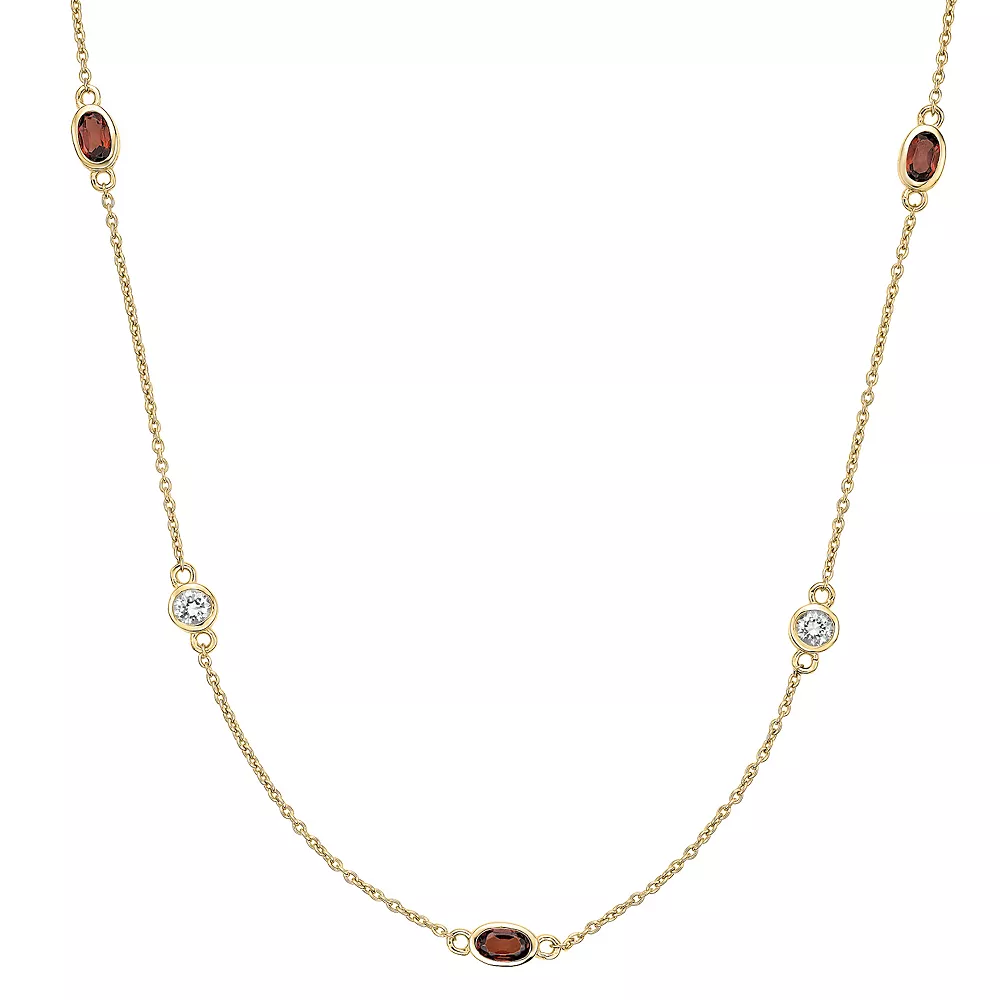 Alternating garnet and white topaz gemstones make this stylish station necklace a captivating complement to your look.