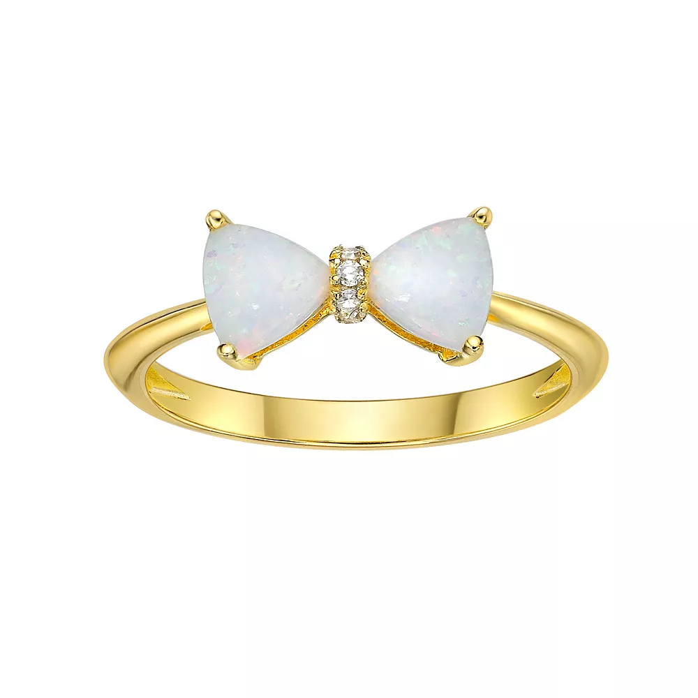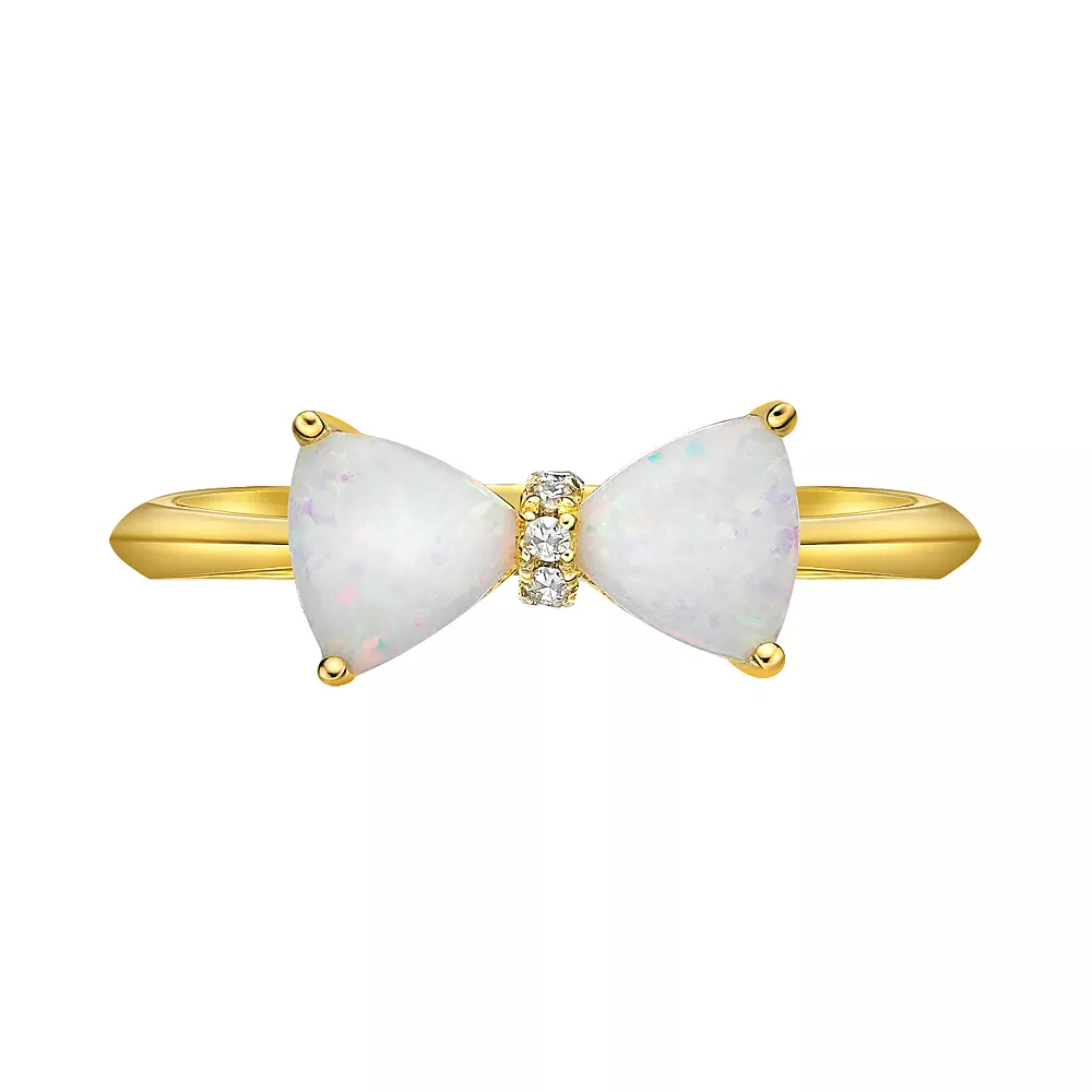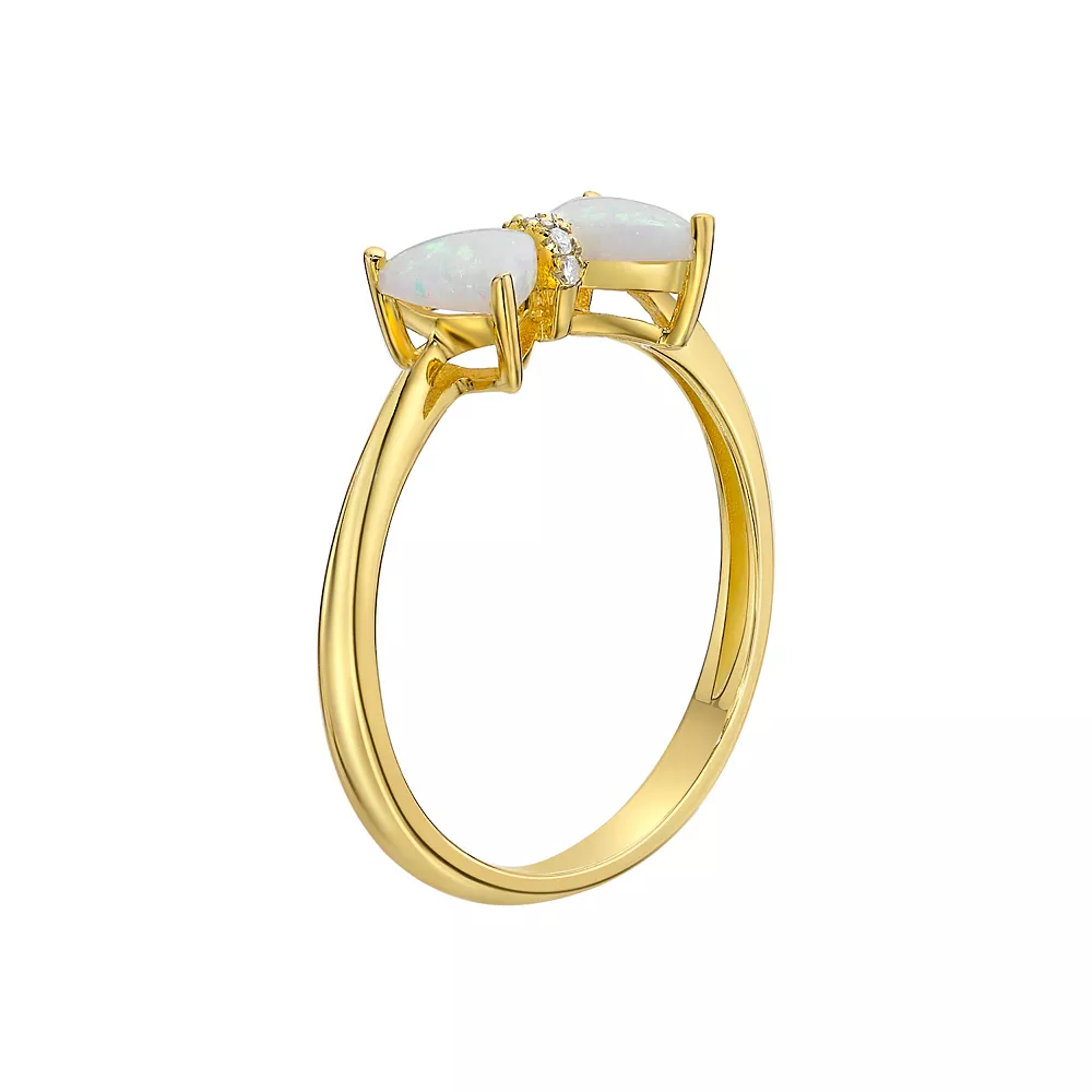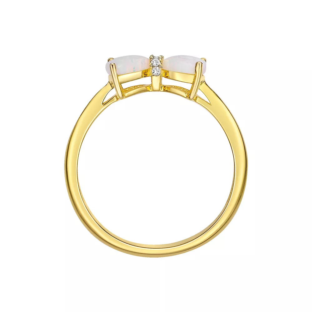 Beautifully adorned with trillion-cut, lab-created white opal gemstones, this 18k gold-over-sterling silver ring is a captivating addition to your jewelry collection.