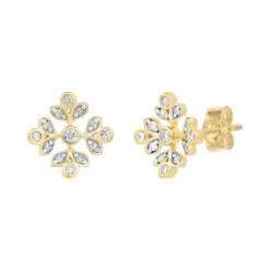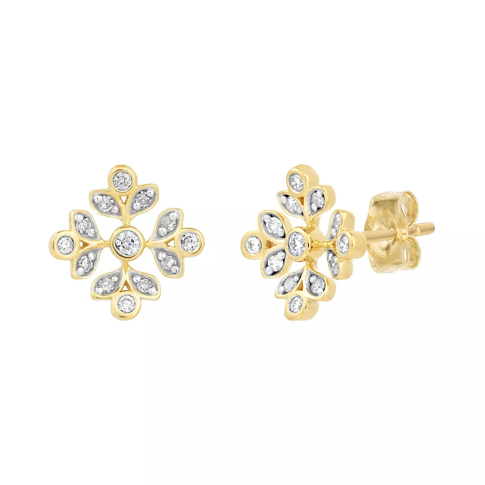 These gorgeous 18k gold over sterling silver diamond stud earrings are a must-add to your fine jewelry collection.