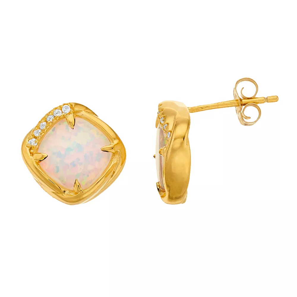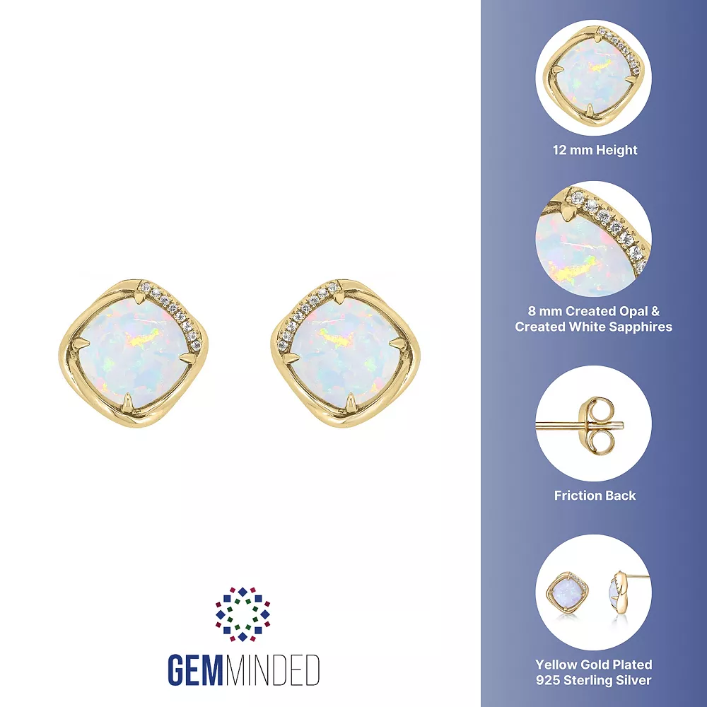 Featuring stunning, lab-created opal center stones, and lab-created white sapphire accents, these yellow-gold earrings radiate classic style.