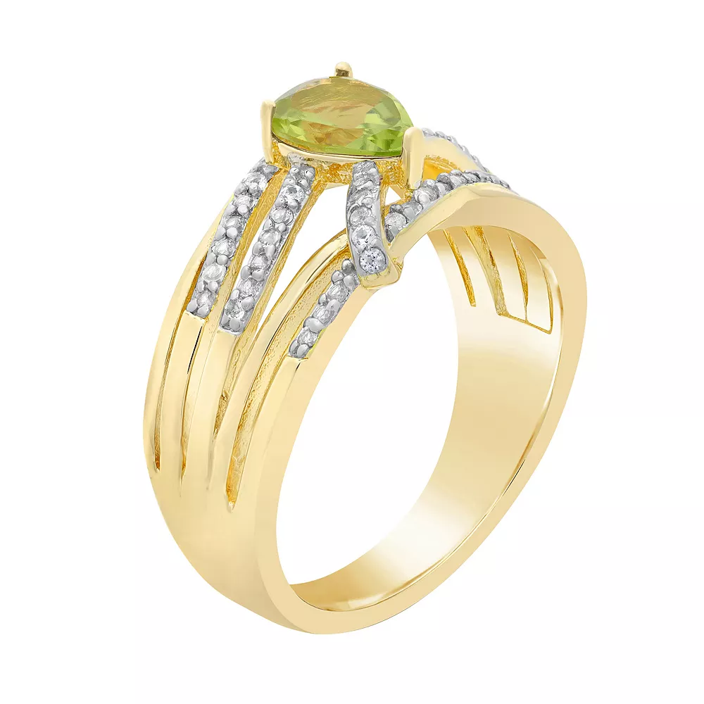 This gorgeous 18k gold over sterling silver white topaz accent and peridot ring is a must add to your fine jewelry collection.