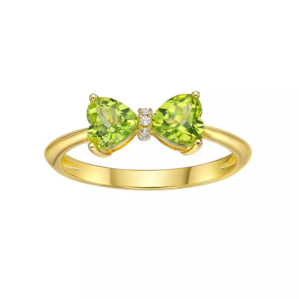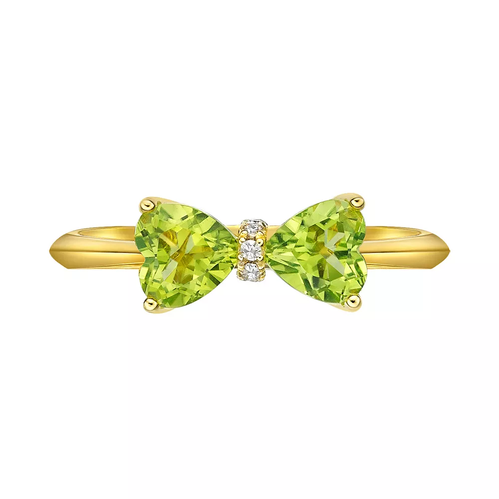 You’ll love accessorizing any look with this gorgeous 18k gold plated sterling silver heart-shaped peridot and diamond accented ring.