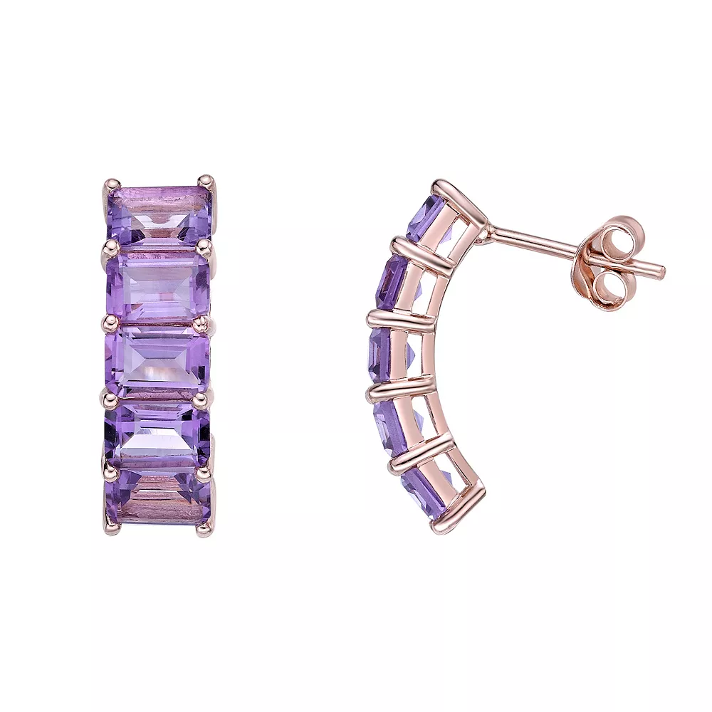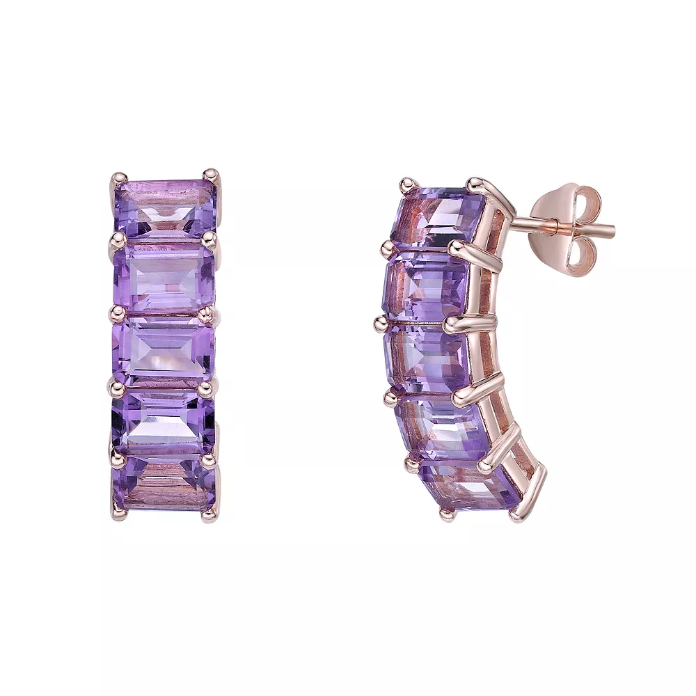Add a touch of color to your jewelry collection with these 18k rose gold plated Gemminded amethyst drop earrings.