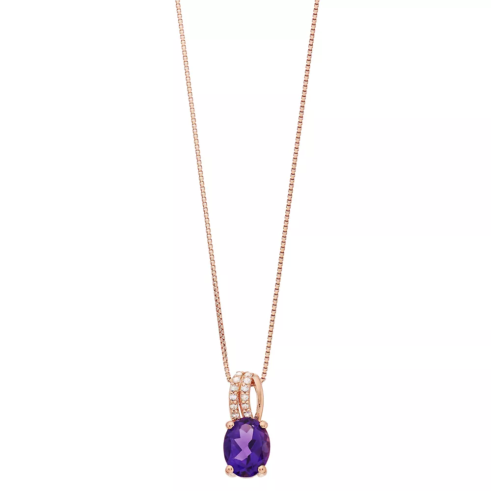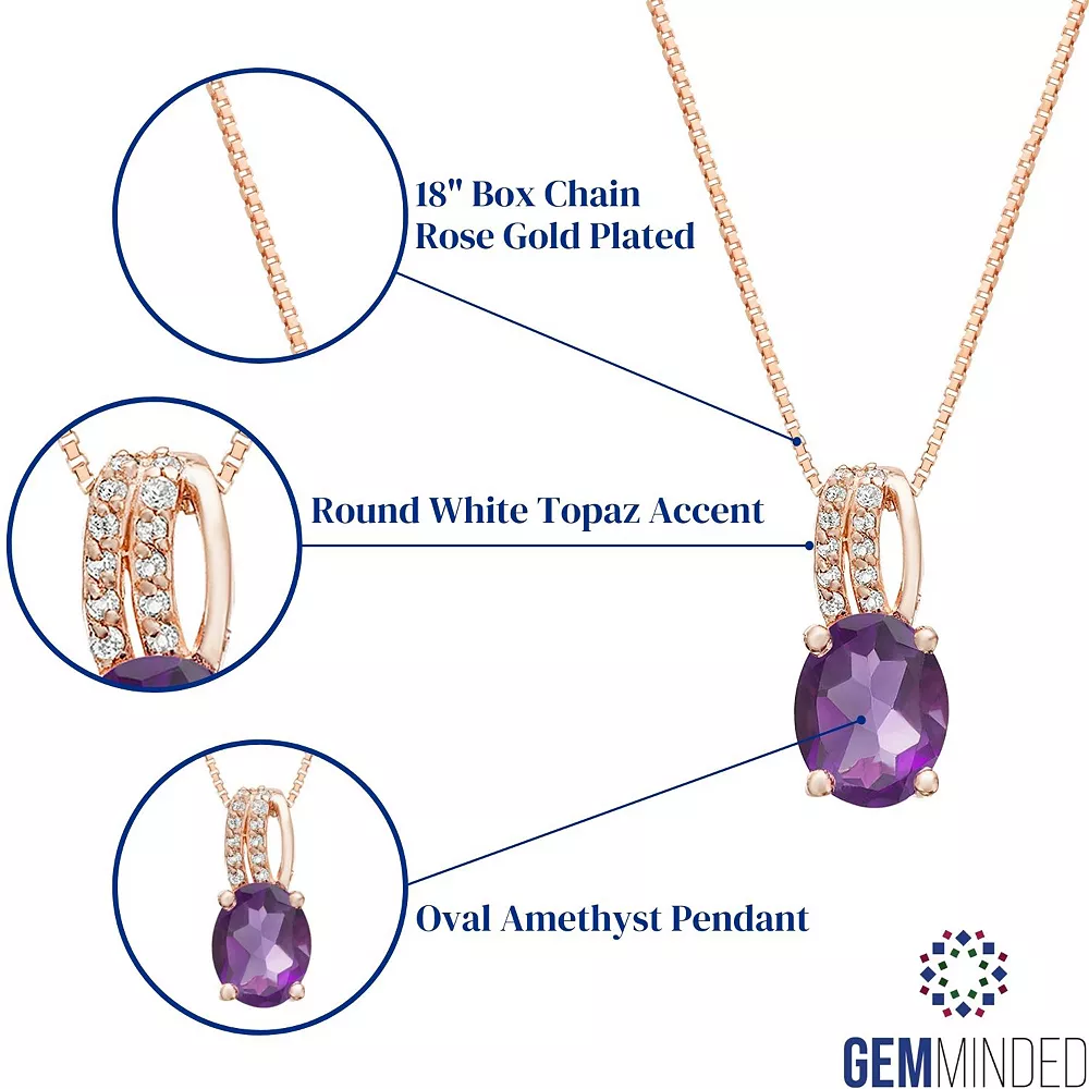 A sparkling amethyst gemstone combines with sparkling white topaz stones gives this 18k rose gold over silver pendant necklace a lovely look.