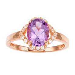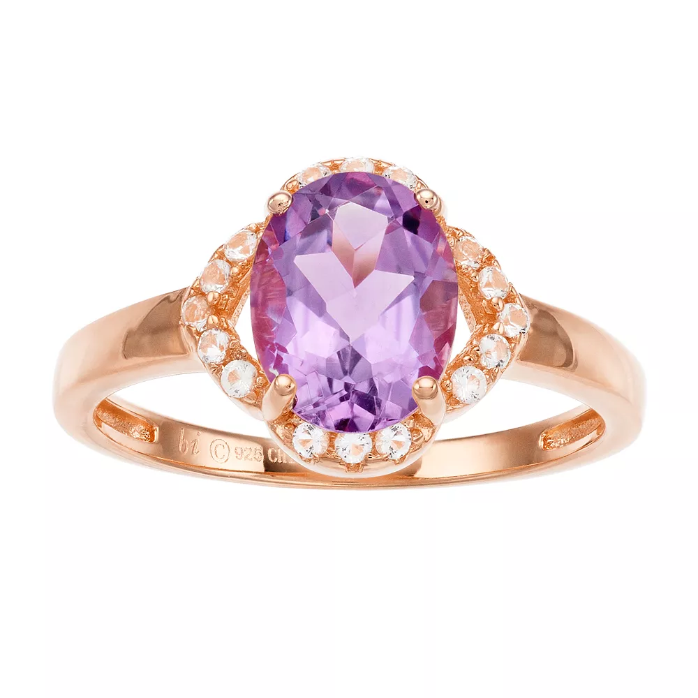 A sparkling amethyst center stone, surrounded by white topaz stones makes this 18k rose gold over silver ring a lovely gift she’ll cherish. Comes in a gift box.