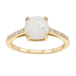 This stunning 18k rose gold over sterling silver lab-created white sapphire and lab-created opal ring is a must-add to your fine jewelry collection.