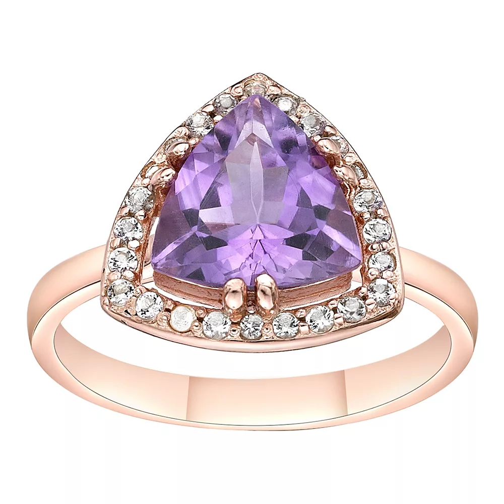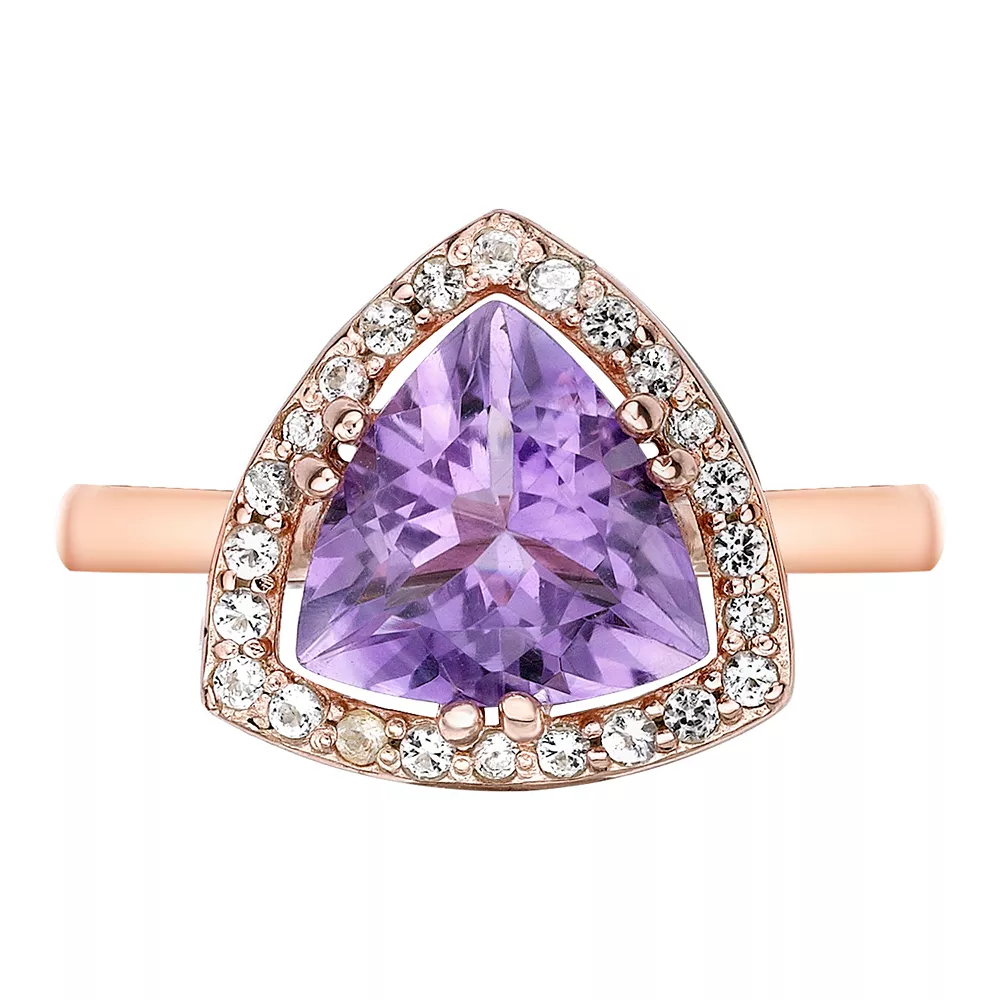 This gorgeous 18 rose gold over sterling silver white topaz and amethyst ring is a must-add to your fine jewelry collection.