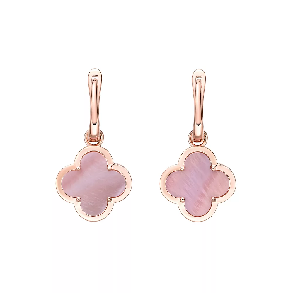 These rose gold over sterling silver and mother-of-pearl drop earrings showcase a flower design that you’re sure to adore.