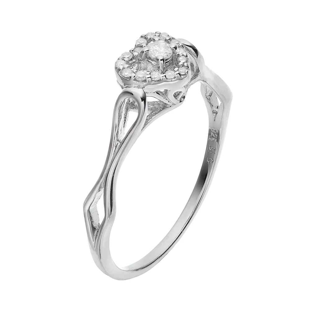 Featuring a heart halo motif adorned with round-cut diamonds and a unique open-worked band, this promise ring is exceptionally beautiful.