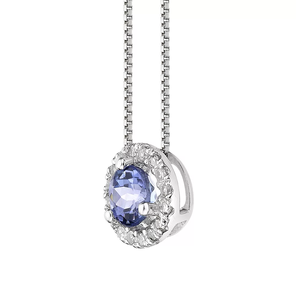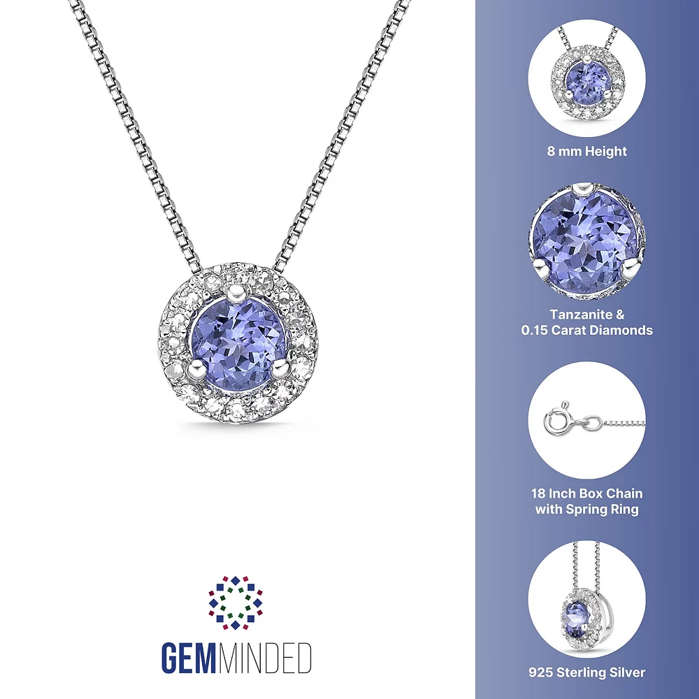 This gorgeous sterling silver diamond tanzanite halo pendant necklace is a must add to your fine jewelry collection.