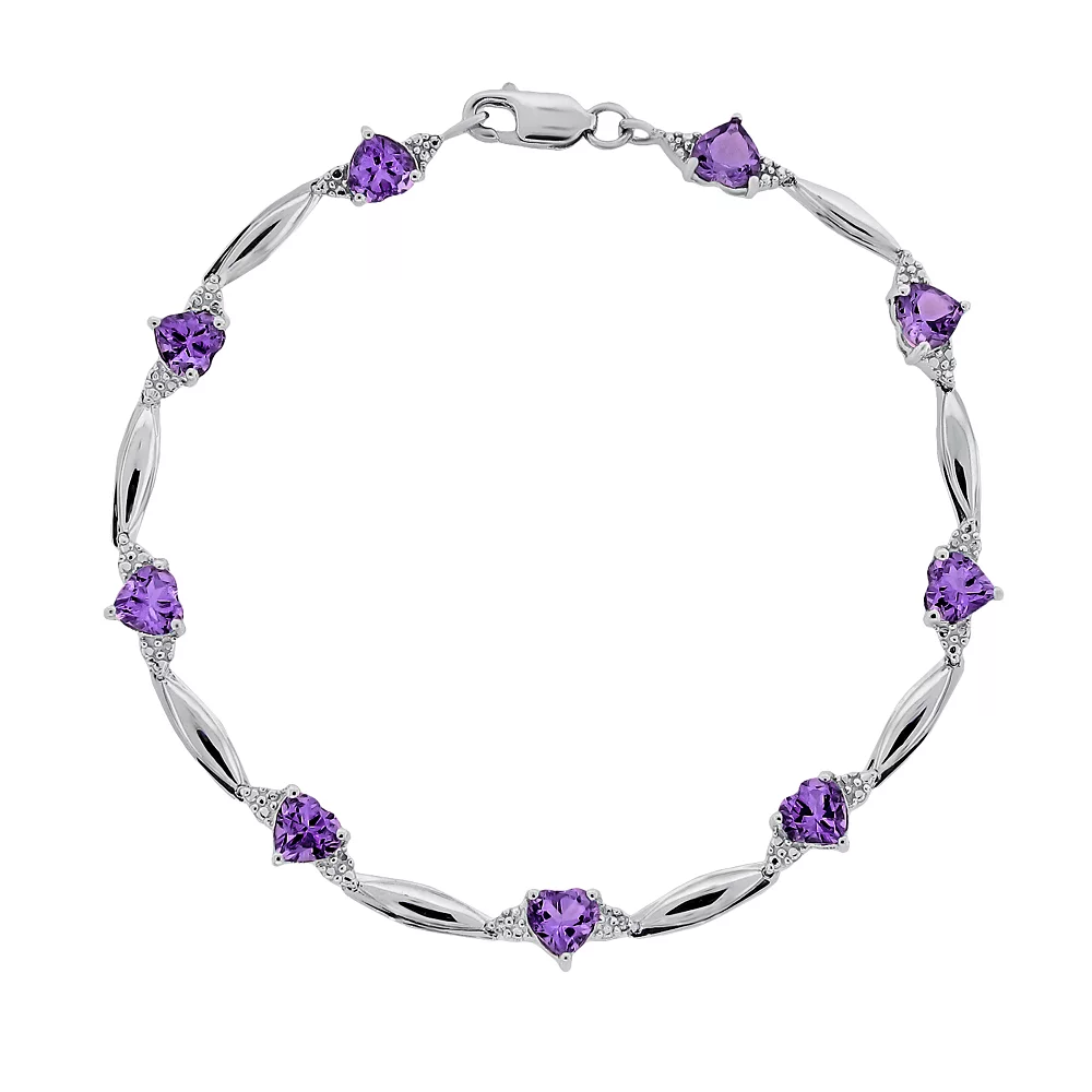 Wrapped in romance. Adorn your wrist with this sterling silver bracelet. Heart-cut amethyst stones and diamond accents give it a lovely glow.