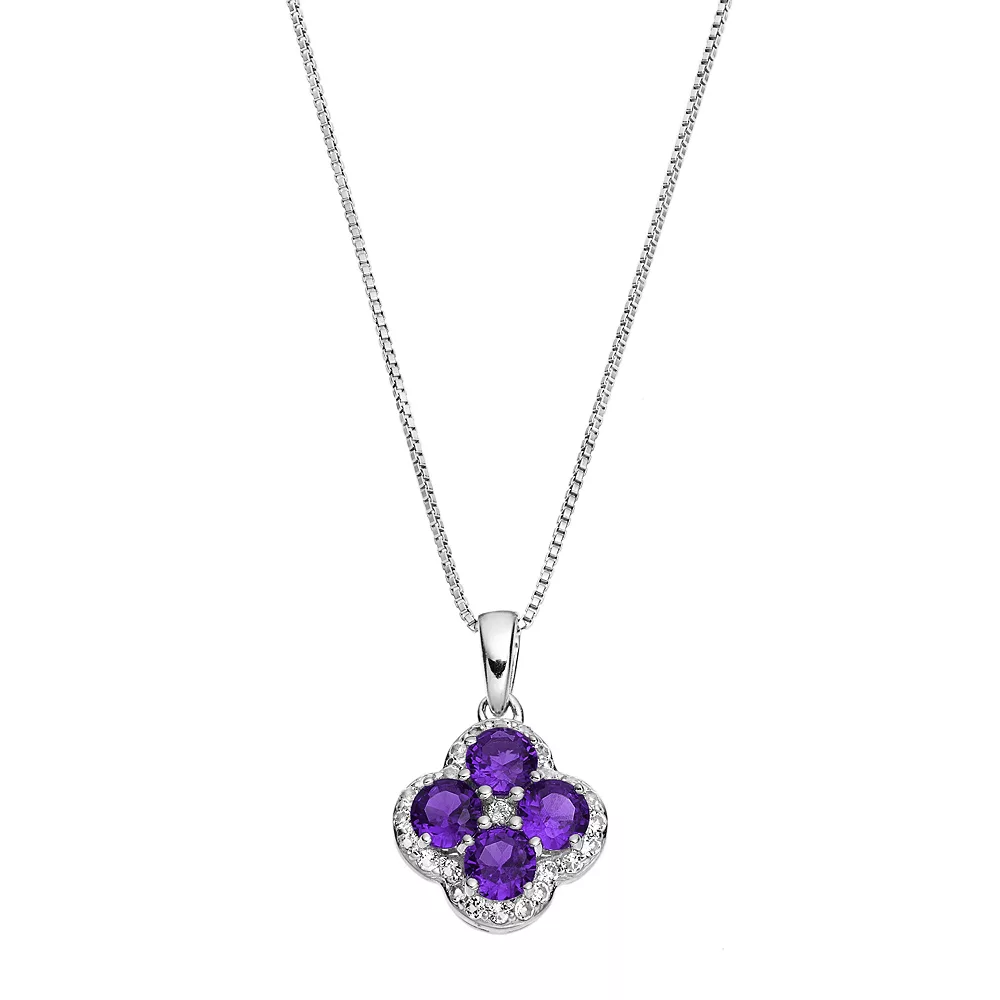 Featuring a floral pendant adorned with genuine amethyst and white topaz stones, this necklace gives your outfit graceful beauty. Comes in a gift box.