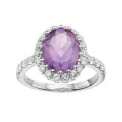 Generously decorated with an amethyst center stone surrounded by white topaz accents, this sterling silver ring delivers spectacular charm.