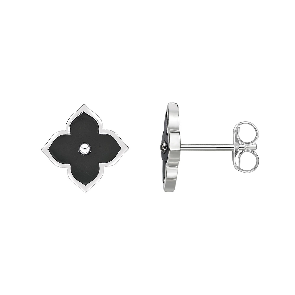 Accessorize any look with these beautiful sterling silver black onyx and cubic zirconia flower stud earrings.