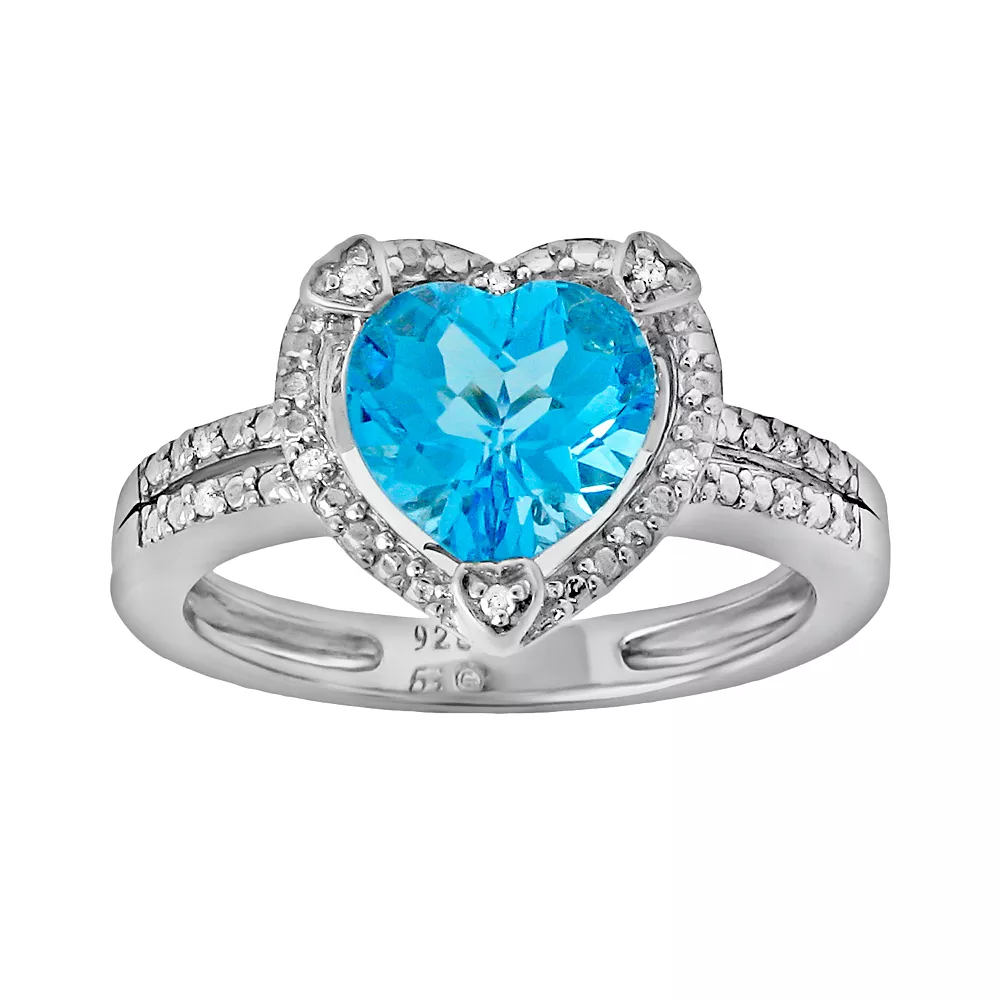Love at first sight. A heart-cut blue topaz stone gives this ring a breathtaking glow. You’ll radiate romance every time you wear this sterling silver ring.