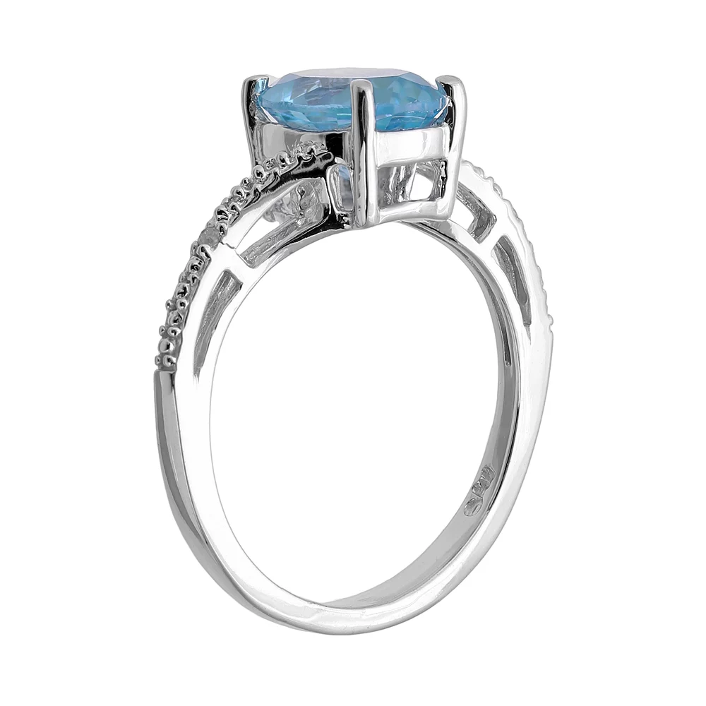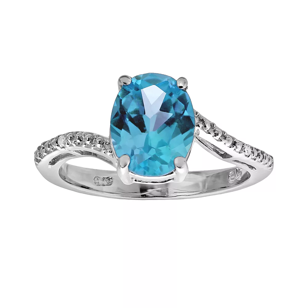 A genuine blue topaz stone and diamond accents adorn this sterling silver ring for understated elegance.