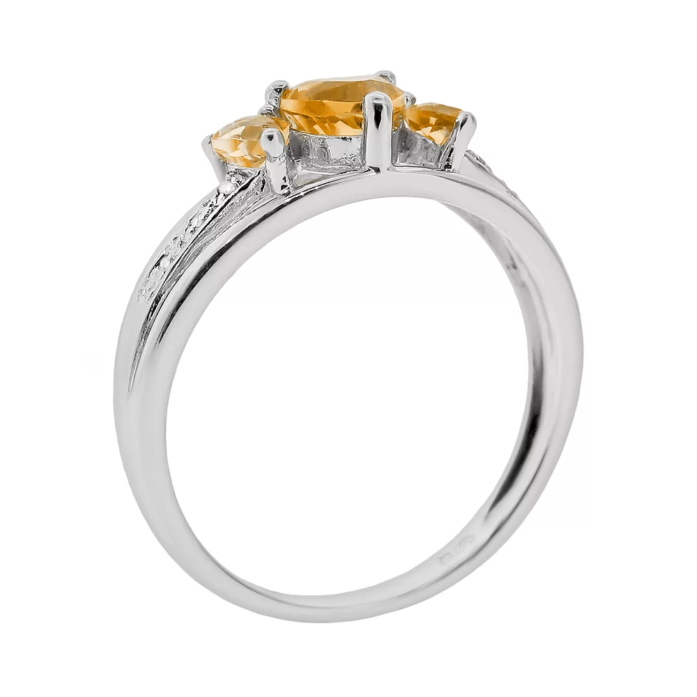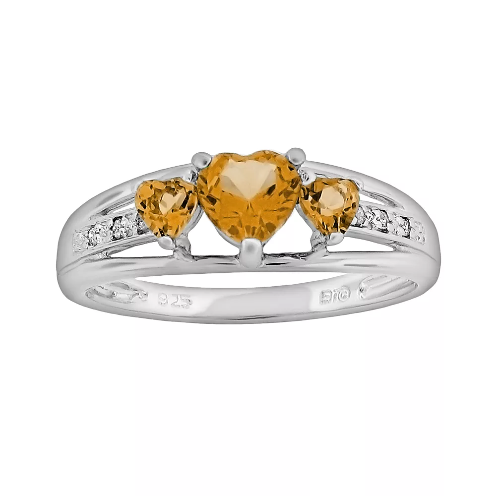 Radiant romance. Three heart-cut citrine stones illuminate this sterling silver ring. Pair this beautiful ring with a new pendant for a look you’re sure to love.