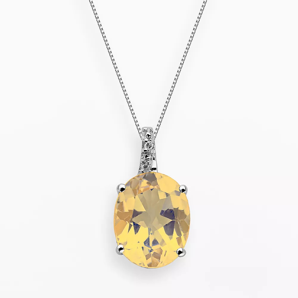 Shimmering diamond accents and a citrine stone give this oval pendant an elegant look.