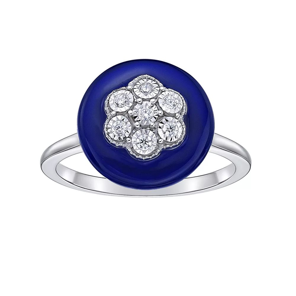 Add a colorful touch of elegance to your jewelry collection with this diamond-accented Gemminded sterling silver and blue ceramic ring.