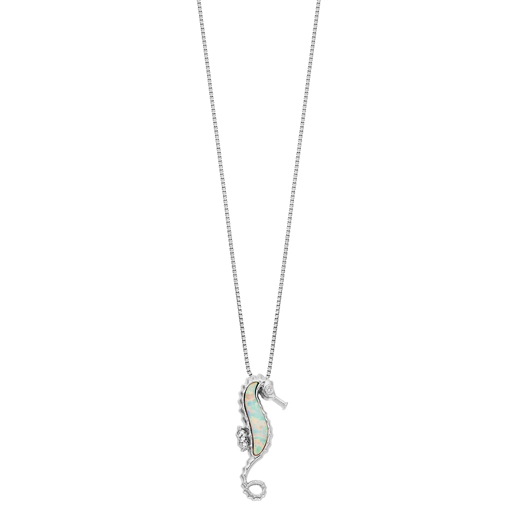 Add a beachy vibe to any outfit with this seahorse pendant necklace, decorated with diamond accents.