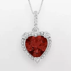Love at first sight. A heart-cut garnet stone gives this pendant a breathtaking glow. You’ll radiate romance every time you wear this sterling silver necklace.